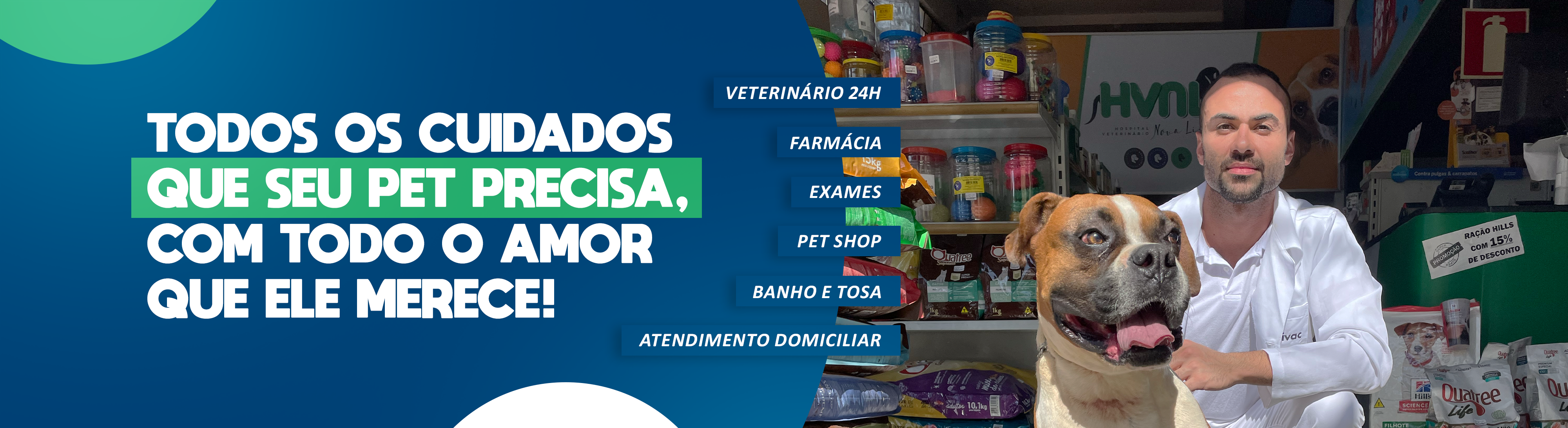 Nosso foco é prestar todos os cuidados que cães e gatos precisam com todo o amor que eles merecem, com isso temos laboratório próprio que fornece resultados imediatos. Serviços veterinários (cirurgias, vacinas, atendimento de emergências 24, consultas, dentre outros). A maior farmácia pet da região (venda de medicamentos, suplementos, coleiras repelentes, antiparasitários, dentre outros). Venda dos mais variados produtos pet (rações, roupinhas, caminhas, brinquedos, patês, petiscos, coleiras, guias, shampoos comuns e de tratamento dermatológico, dentre outros). Serviços de hotelaria pet. Serviço de transporte de animais. Serviço de banho e tosa, entre outros.